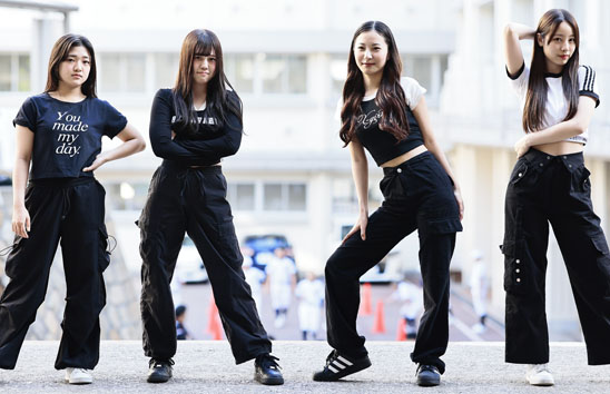 部員の多くが初心者ですが、ダンスを通して皆さんにも楽しんでもらえるよう文化祭やイベントなど、さまざまな発表会に向けて日々練習しています。今年度から世界大会で優勝をされた先生が指導をしてくださっています。