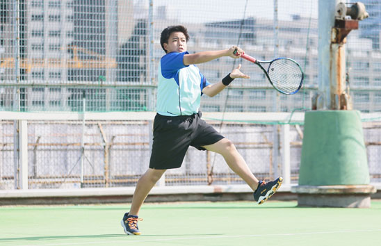 楽しく元気に大好きなテニスを楽しもう!をモットーに毎日の練習に取り組んでいます。校舎の屋上にテニスコートがあり、神戸の景色を楽しみながらテニスができます。