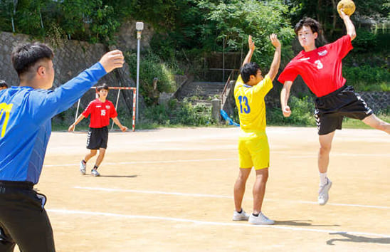 経験の有無にかかわらず、誰もがハンドボールを楽しんで活動しています。頭を使ったプレーと結束力で県大会上位進出を目指します。