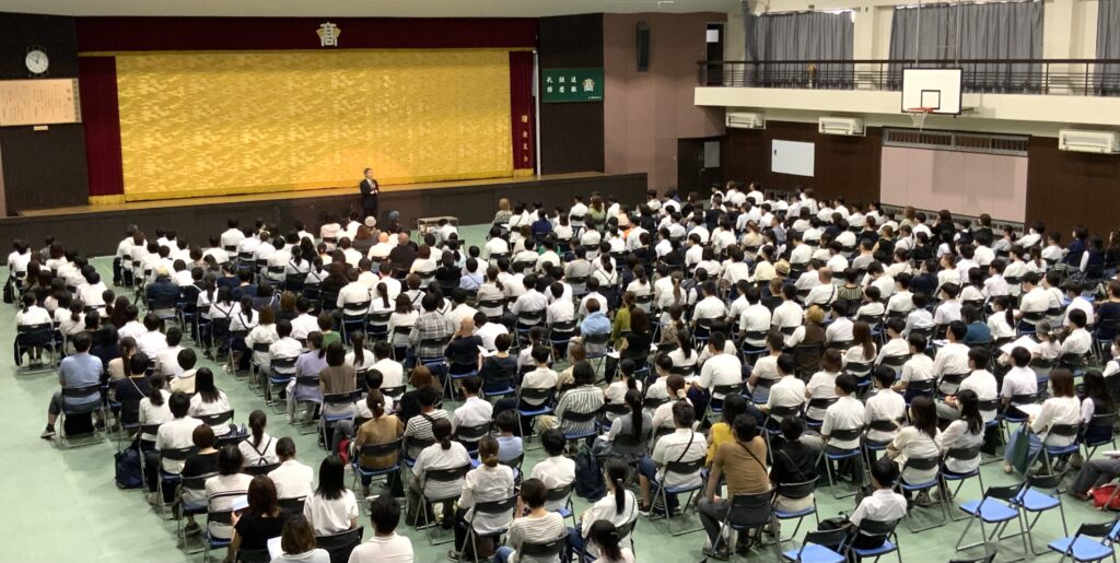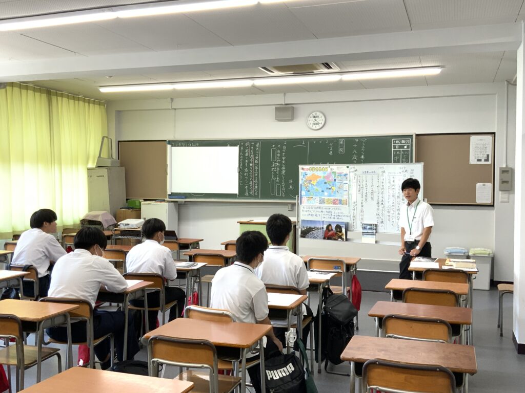 本日9/10(日)、「第2回オープンハイスクール」を開催しました。秋の気配が、東の台風の影響で夏に逆戻りの蒸し暑い中にもかかわらず、開始時間の10時前より沢山の中学生と保護者の皆様に来校していただき、学校紹介(PPにて説明)・模擬授業(国語「星野道夫、アラスカへ導く-16歳のきっかけ-」・数学「高校数学を体験-ド・モルガンの法則」・英語「アメリカの遊びを体験してみよう(Bean Bag Bucketz)」・理科「炎色反応」・日本史「映像で学ぶ、信長の天下統一」)、施設見学・部活動体験(軟式野球部・柔道部・空手道部・バレーボール部・剣道部・ゴルフ部・サッカー部・卓球部・テニス部・陸上競技部・射撃部・展示参加-華道部・鉄道研究部)・個別懇談に参加していただきました。