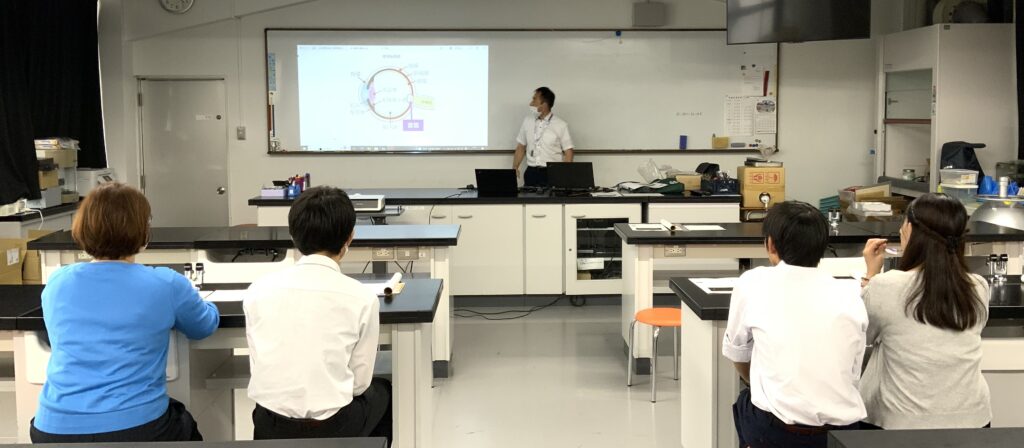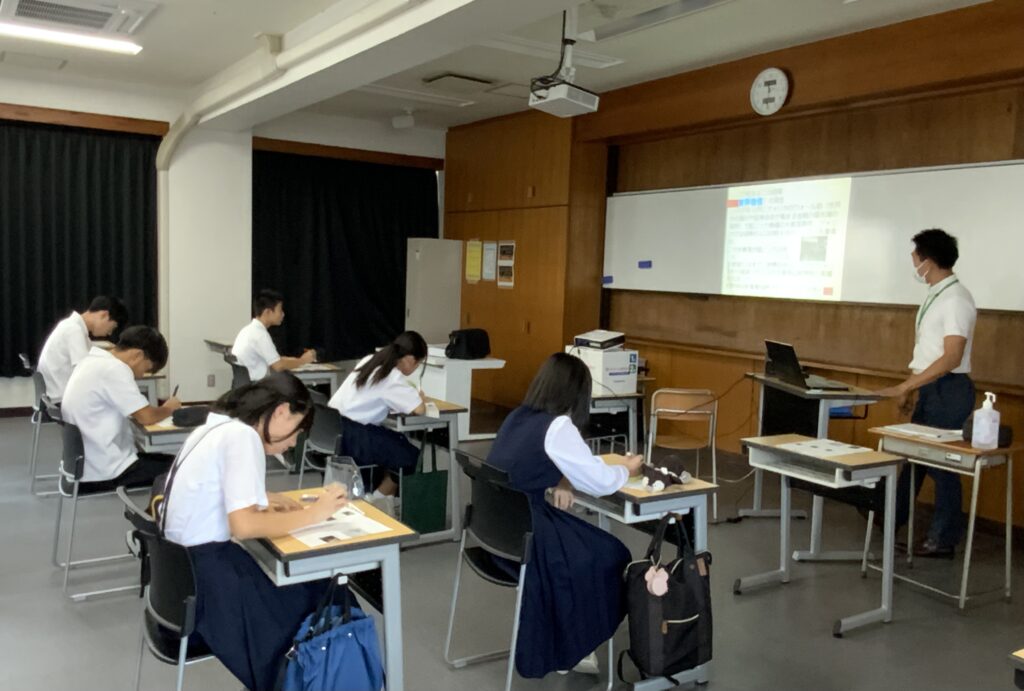 秋の気配が日一日と深まる10/5(土)、「第3回オープンハイスクール」を開催し、沢山の中学生と保護者の皆様に来校していただきました。ありがとうございました。今回、生徒会・剣道部・陸上競技部の女子部員が誘導をこなしてくれて、生徒も参加した会が開けました。内容は、学校紹介(PPにて説明)・模擬授業(国語「古文の世界に親しもう」・数学「高校数学に触れてみよう。」・英語「Play&Learn:Fun English Games on Your Devices」・理科「目のメカニズムを知ろう〜盲斑の形と位置」・地理「映像で学ぶ第二次世界大戦」)、施設見学・部活動体験(硬式野球部・柔道部・空手道部・剣道部・ゴルフ部・サッカー部・女子バスケットボール部・射撃部・陸上競技部(長距離)・テニス部・美術部)・個別懇談に参加していただきました。