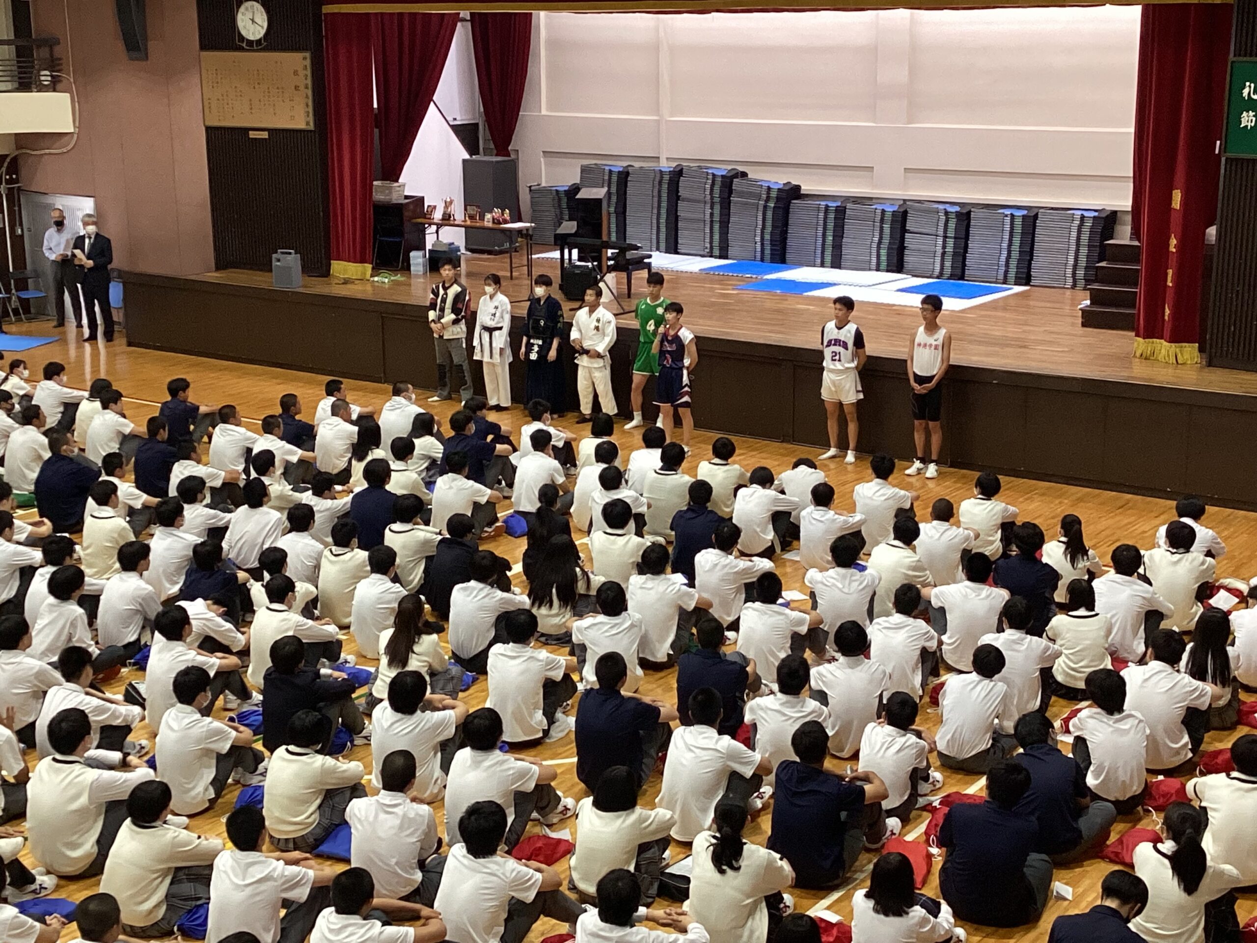 2023.06.17学校行事 本日「第71回文化祭」を、4年ぶりに来場者を迎え実施しました。まだ新型コロナウ… 2023.06.16学校行事 明日6月17日(土)は文化祭です。クラスメイトと楽しそうに準備をするようすをお… 2023.06.12クラブ 第67回 兵庫県高等学校総合体育大会バレーボール競技において決勝戦で市立尼崎と… 2023.04.25学校行事 4/24(月)に、避難訓練を行いました。非常ベルが鳴り、緊急避難放送後に各学年… 2023.04.18学校行事 4月10日(月)午後から入学式を行いました。本年度も保護者の方は1名のみのご出… 2023.04.18学校行事 2日目は、前日に学んだ「ロイロノートを使った自己紹介の方法」をさっそく実行。ク… 2023.04.17学校行事 舞子ビラにおいて、新入生(78回生)のSGファーストキャンプを実施しました。1…